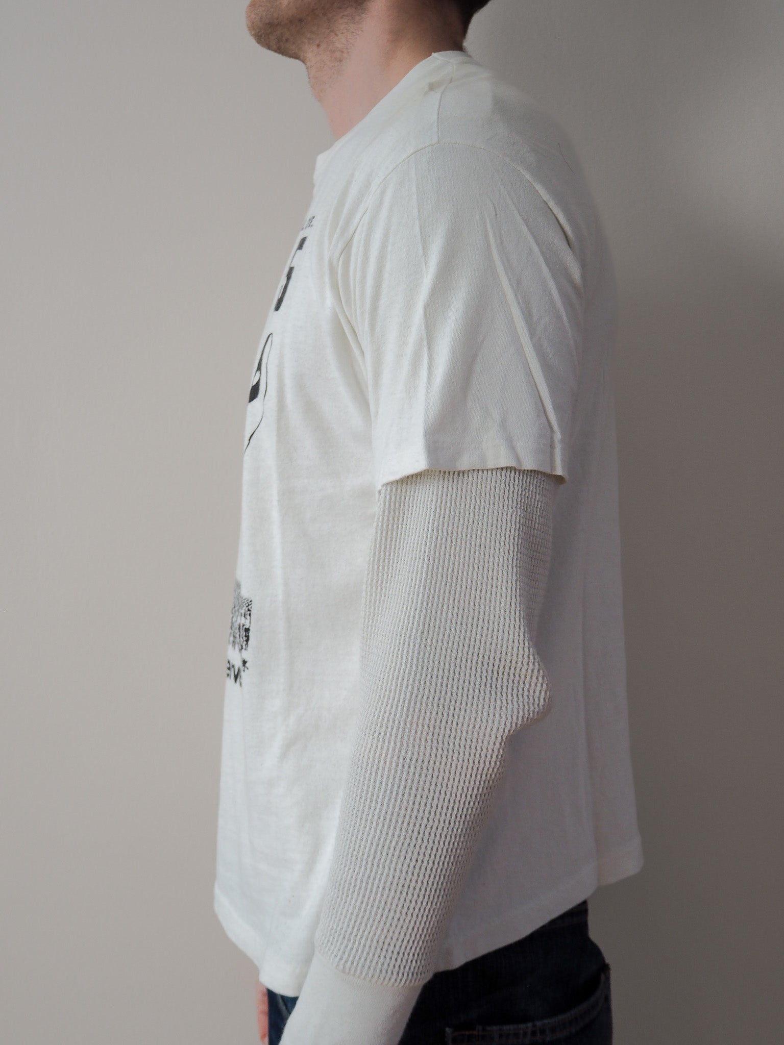 Printed on a Hanes 100% tagged XL. Light wear throughout. Single stitched top and single stitched bottom.