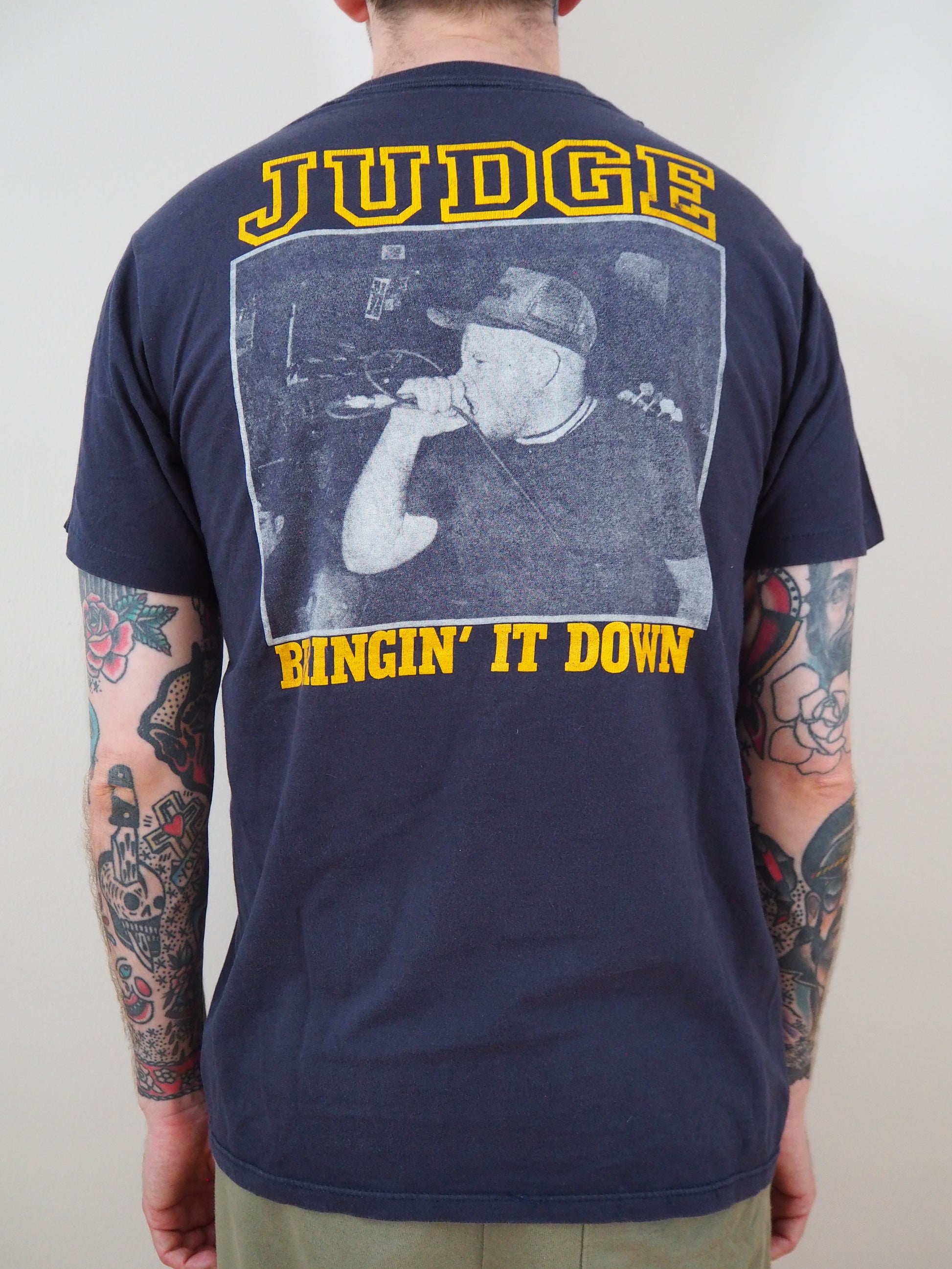 Printed on a cut tag. Faded tee and faded lighty on graphic. Single stitched top and double sitched bottom. Great fade with some marks throughout.
