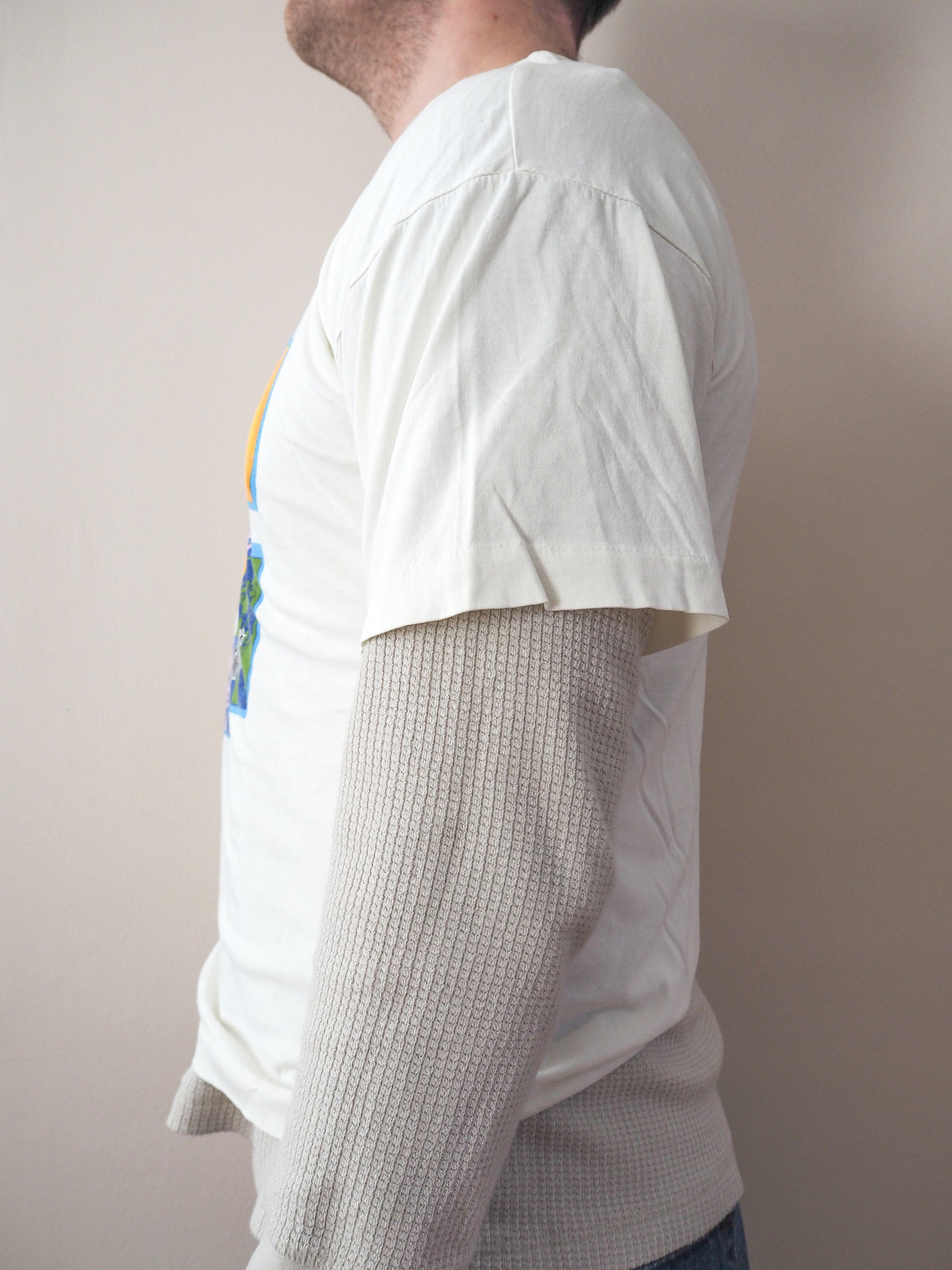 Licensed to Jamie Hewitt and printed on euro Firefox shirt. Some light staining throughout with side stitching. Single stitched top and single stitched bottom.