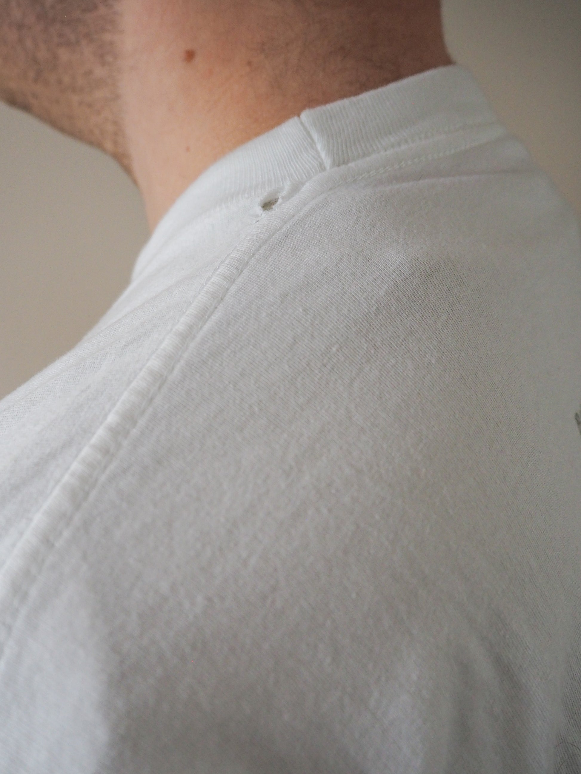 Printed and on euro blank tagged XL. Great fade with a few very faint yellow spots. Single stitched top and single stitched bottom.