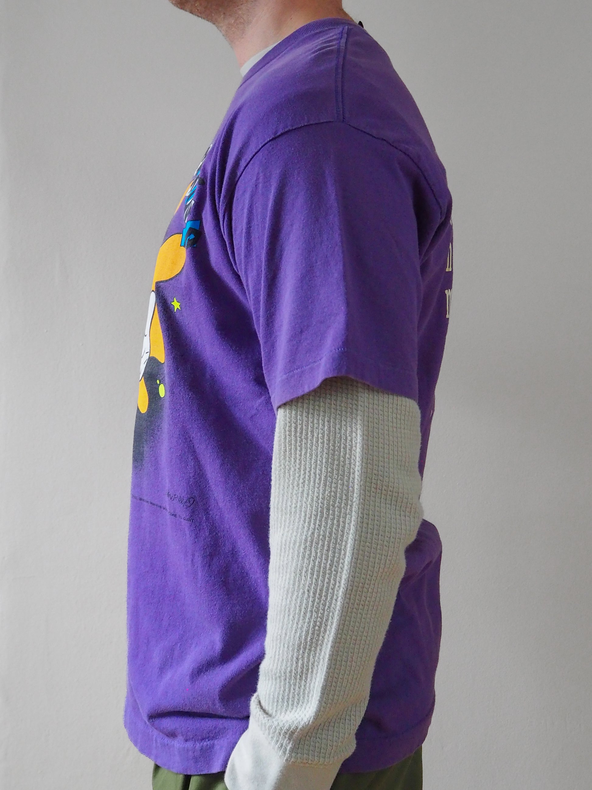 Printed and licensed to Giant tagged XL. Single stitched top and single stitched bottom. Great fade with minor vintage wear.