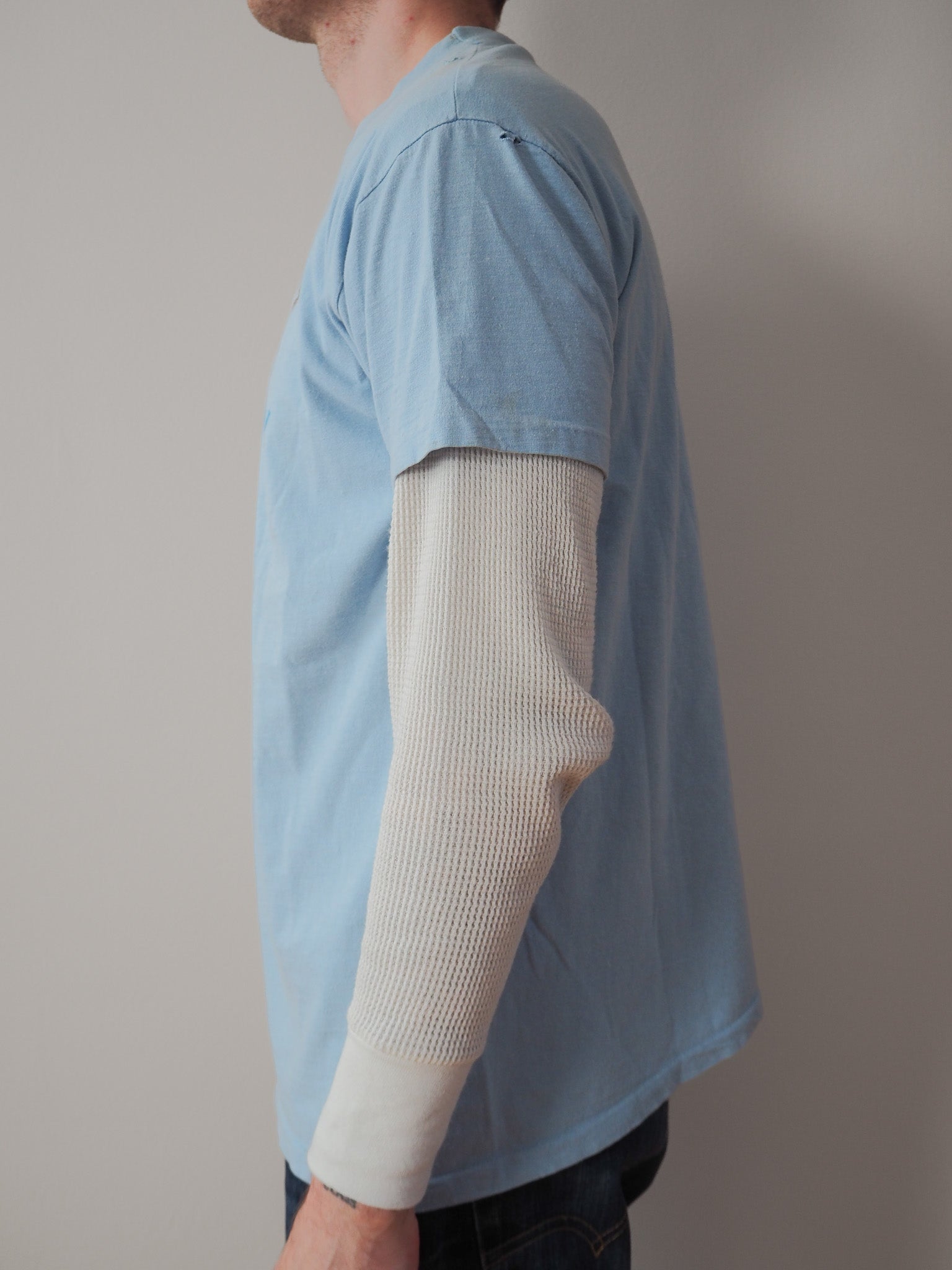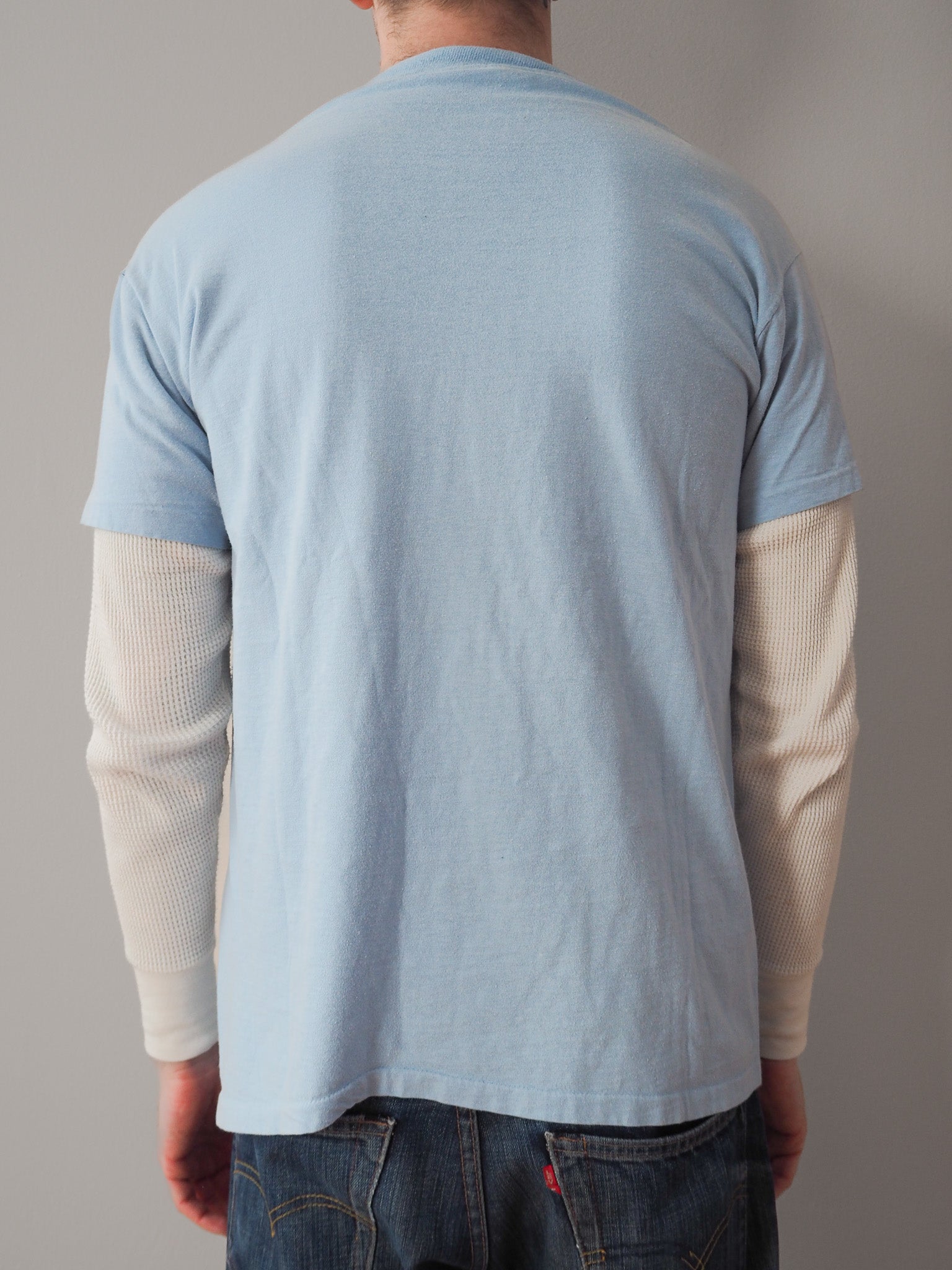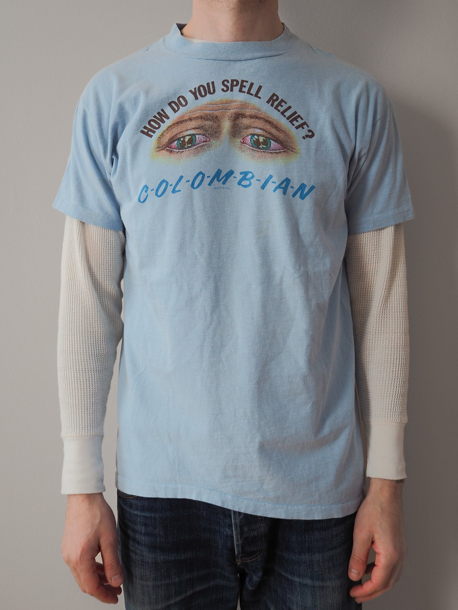 Printed on a Hanes Orange tagged XL. Small pinhole chewing on shoulder. Single stitched top and single bottom.