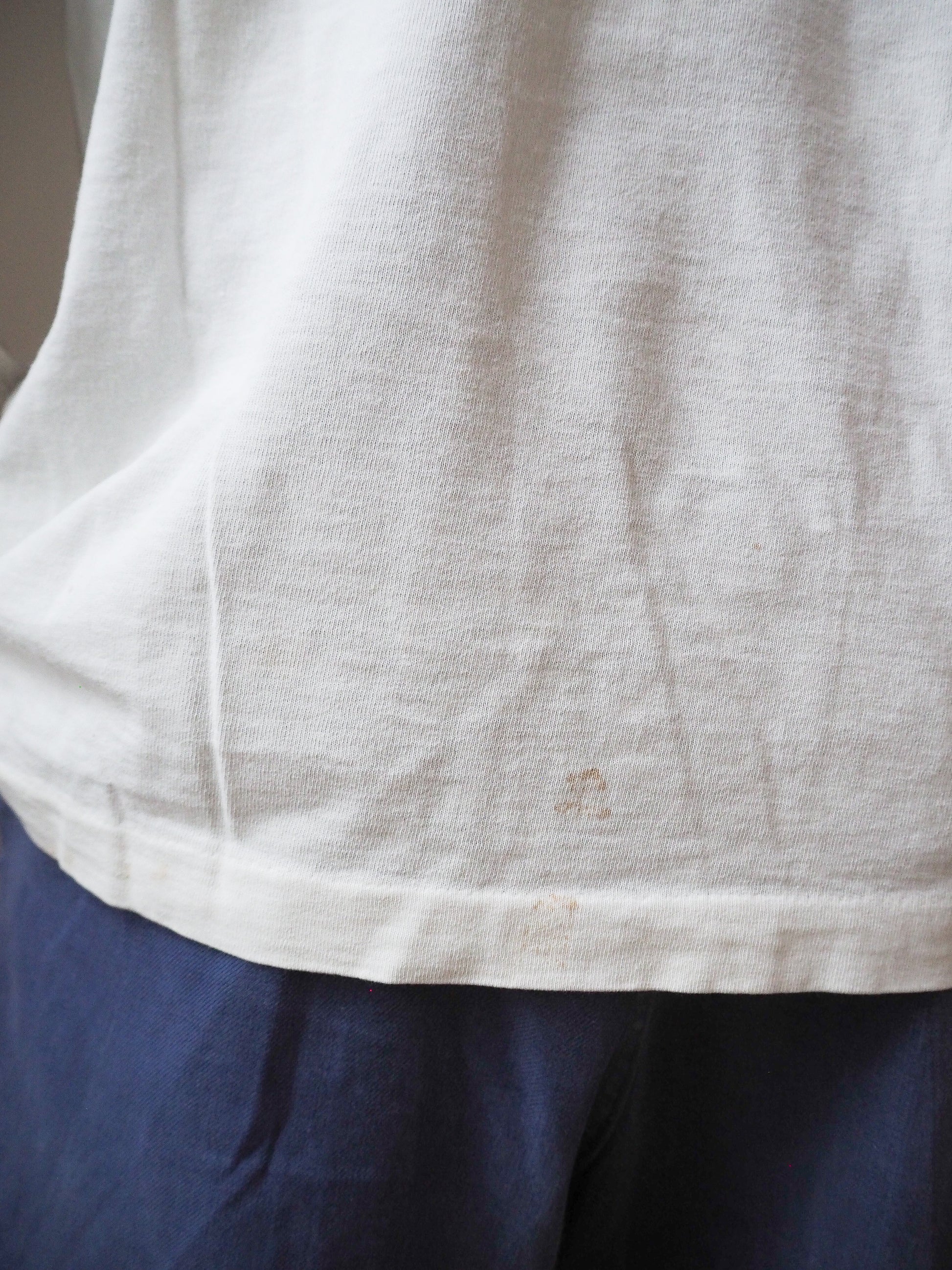 Licensed to Nice Man. Some flawing and staining on the front and back of the shirt. Great fade and wear.