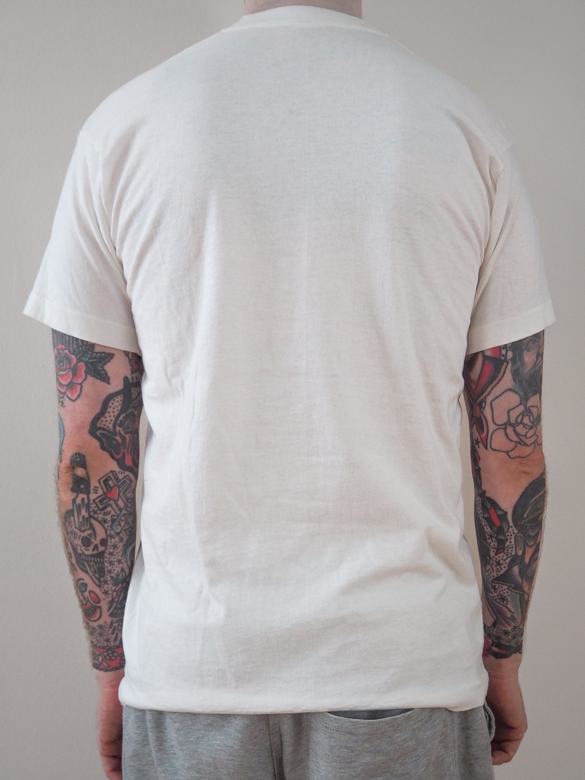 Printed on a Fruit of the Loom tagged large. Some smudges and marks throughout shirt. Single top and single bottom.