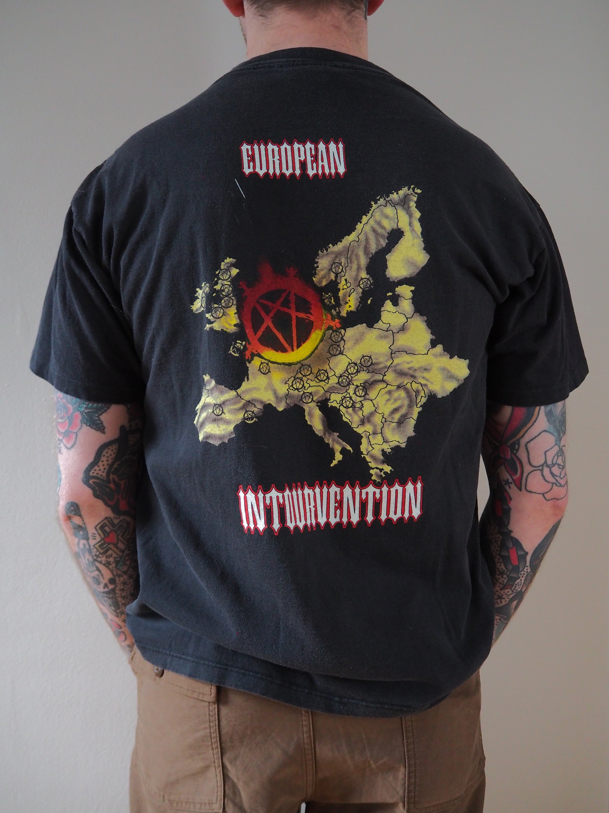 Licensed and printed on a Brockum tagged XL. Great fade in good vintage condition. Single stitched top and double stitched bottom.