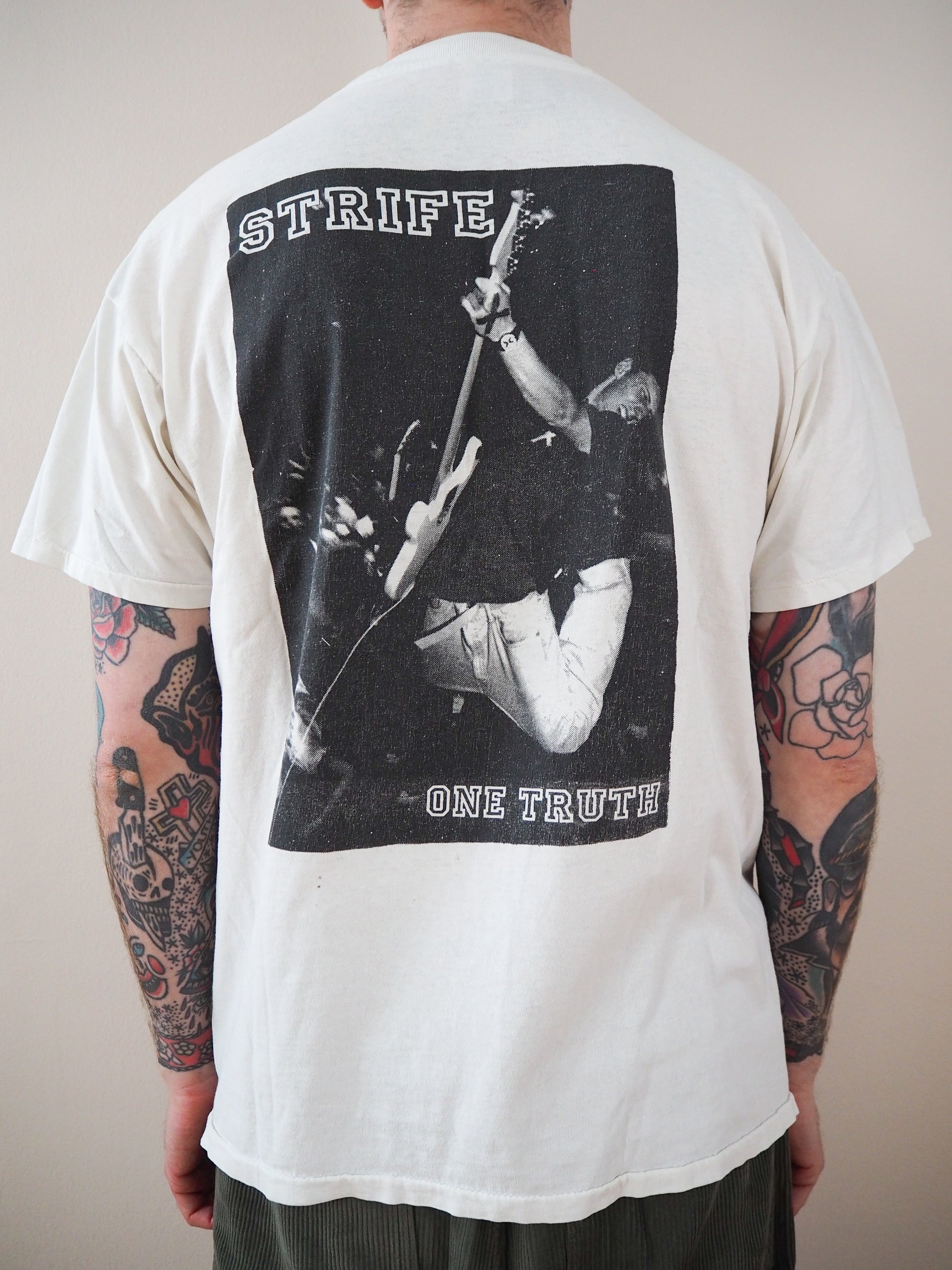 Printed on Delta tagged XL. Some yellowing throughtout shirt, cracking on the graphic. Single stitched top and single stitched bottom.