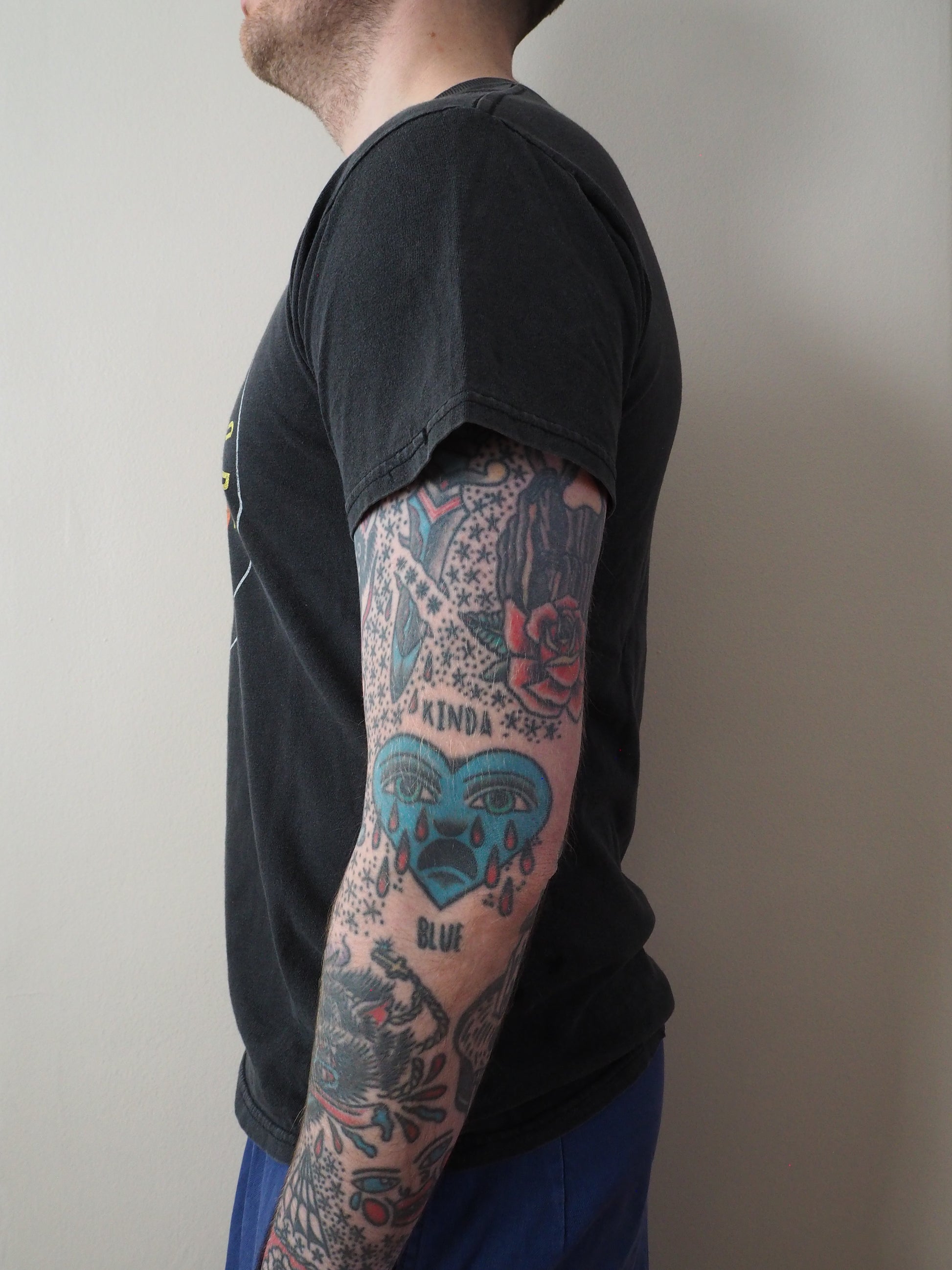 Cut tag with cracking on graphic and good fade. Double stitched top and double stitched bottom.