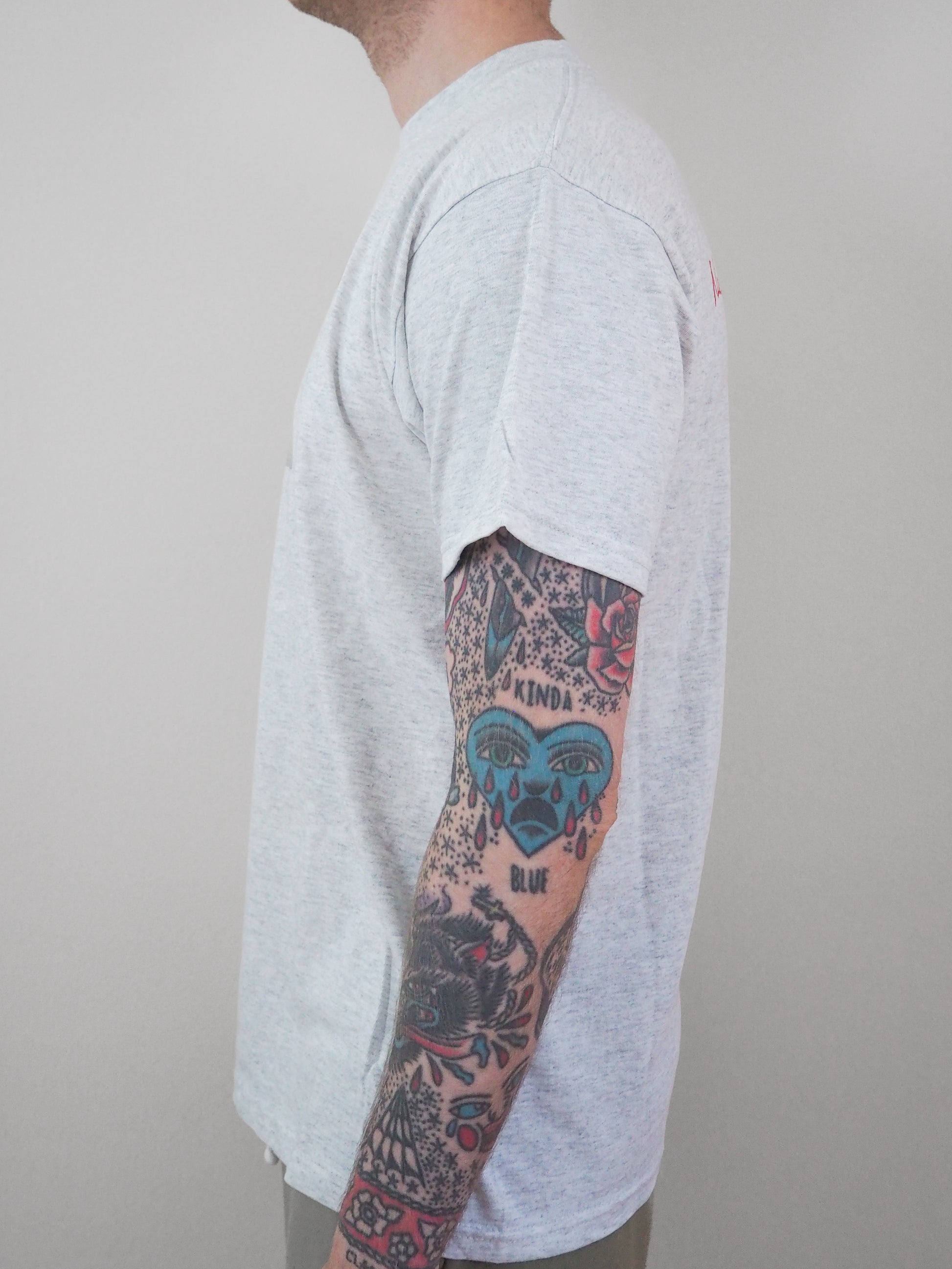 Printed on a Gildan Heavy cotton tagged size large. Deadstoc condition. Double stitched top and double stitched bottom.