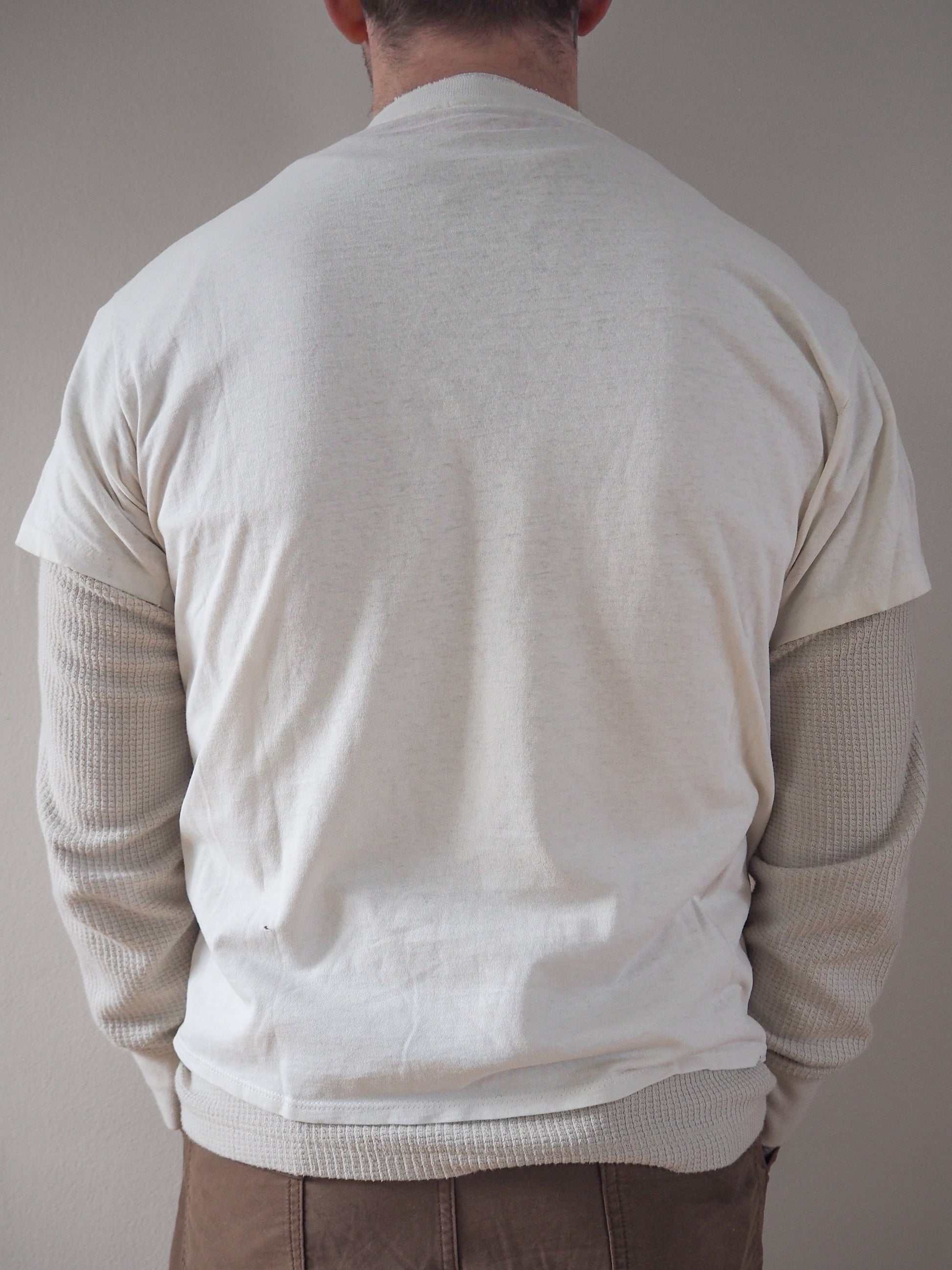 Printed on a 80s Hanes 100% cotton tag. Thrashed throughout tee with some staining as well. Single stitched top and double stitched bottom.