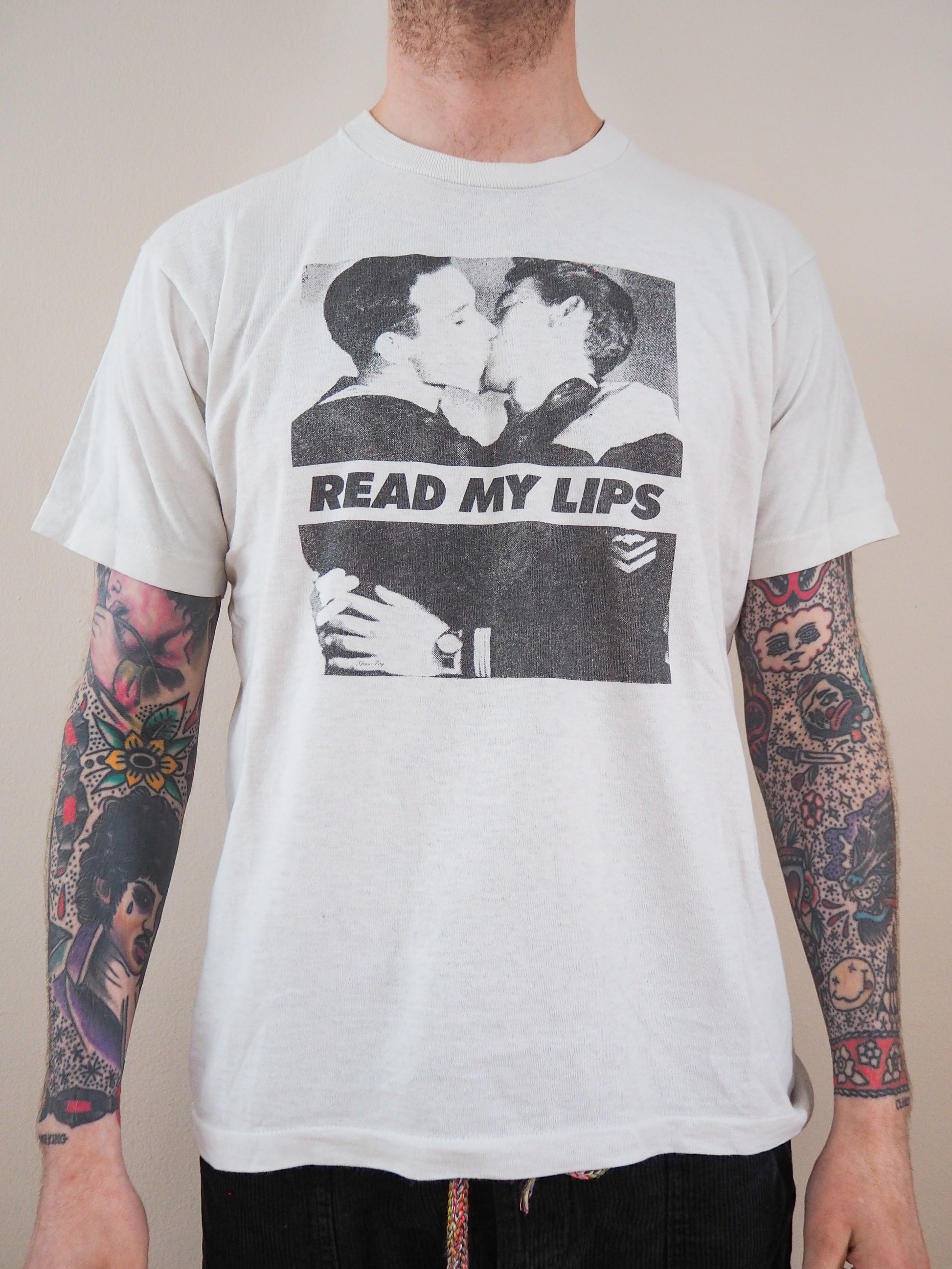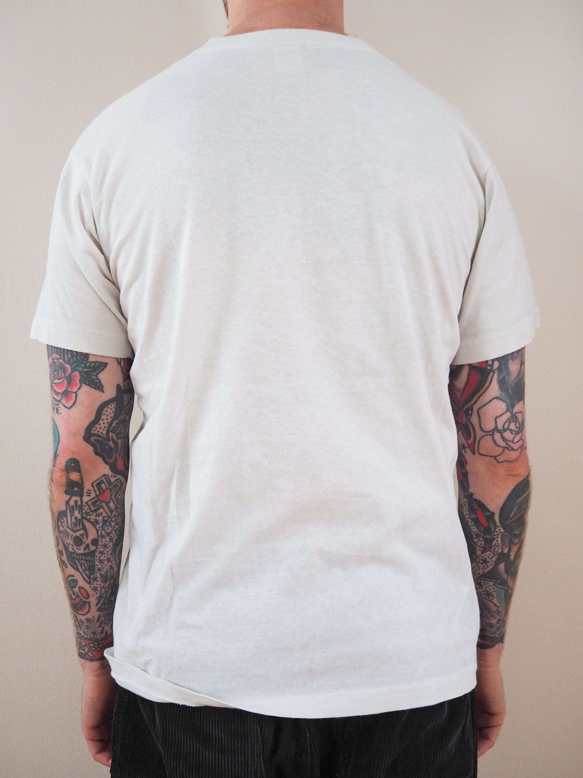 Printed on a Fruit of the Loom tagged large. Some fading and single stitched top and single stitched bottom.