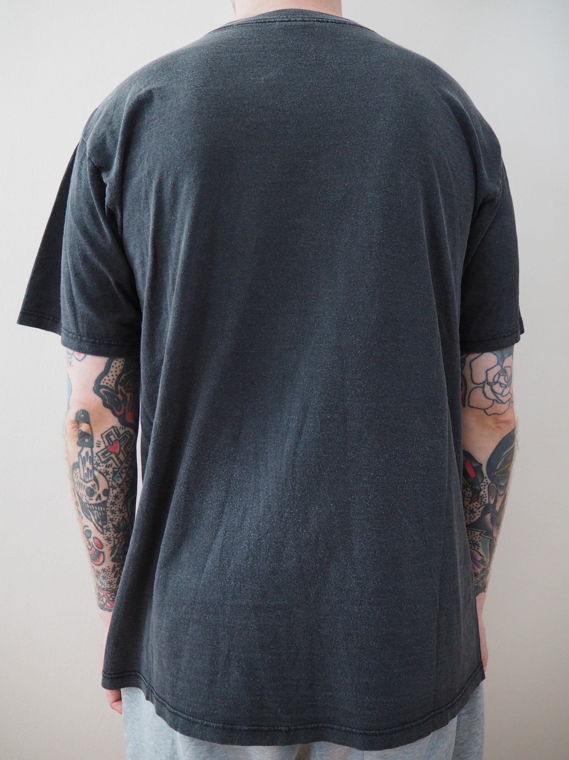 Printed on a Naturals 100% cotton tagged XL.Cracking in graphic, great fade on shirt. Double stitched top and double bottom.