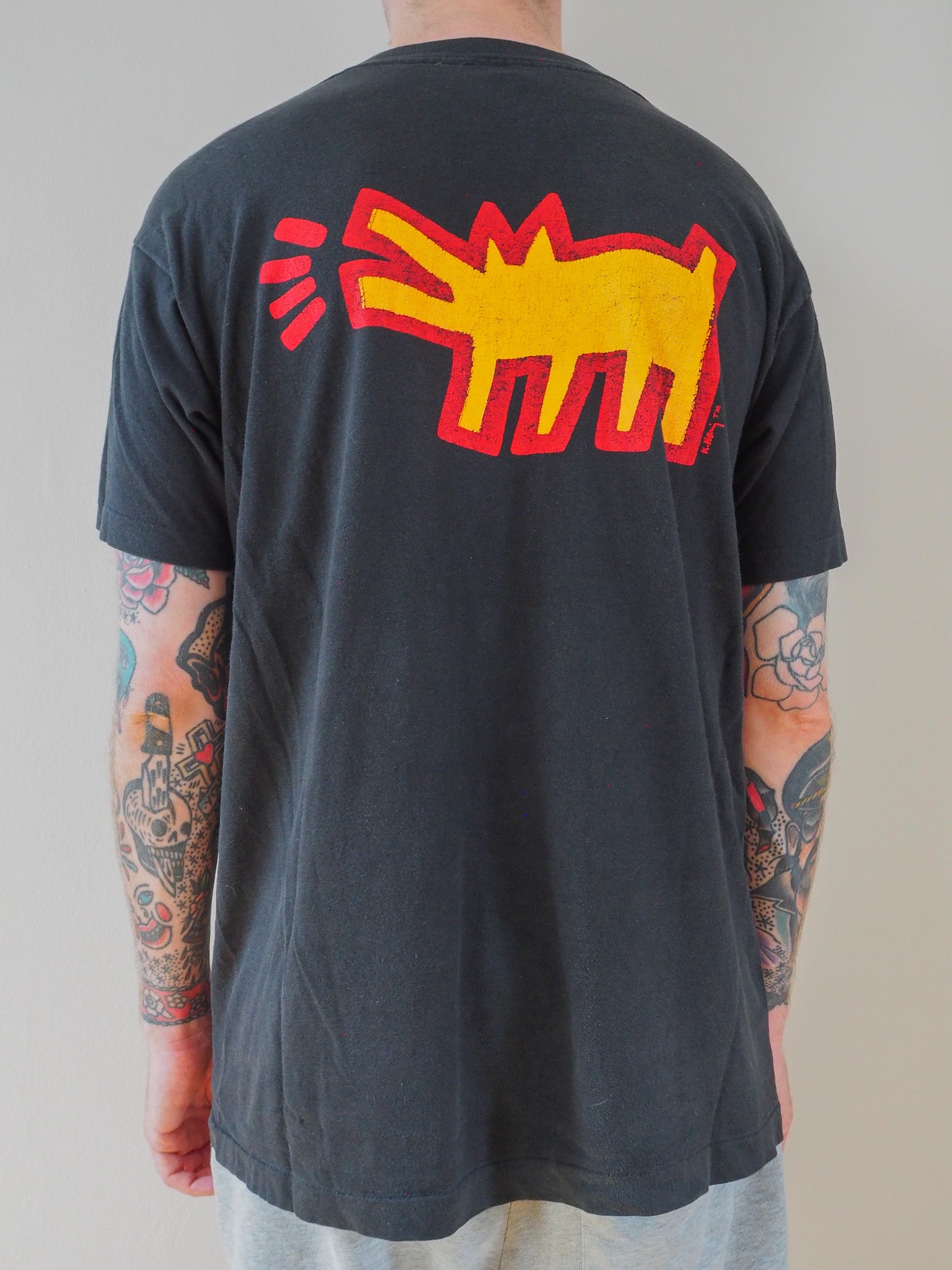 Printed on a Pop Shop tagged XL. Good fade. 2 small bleach stains in pits. Single stitched top and single stitched bottom.