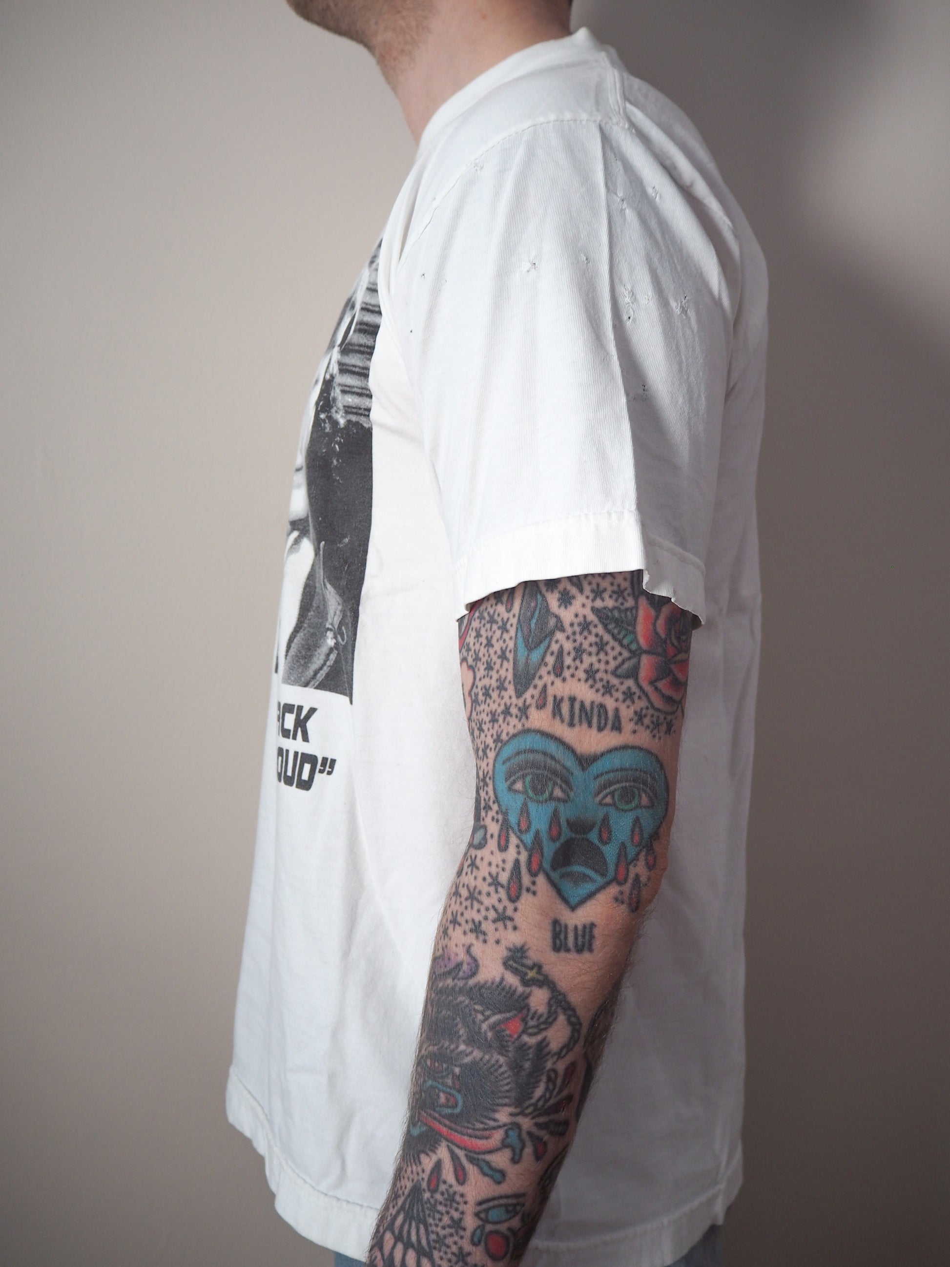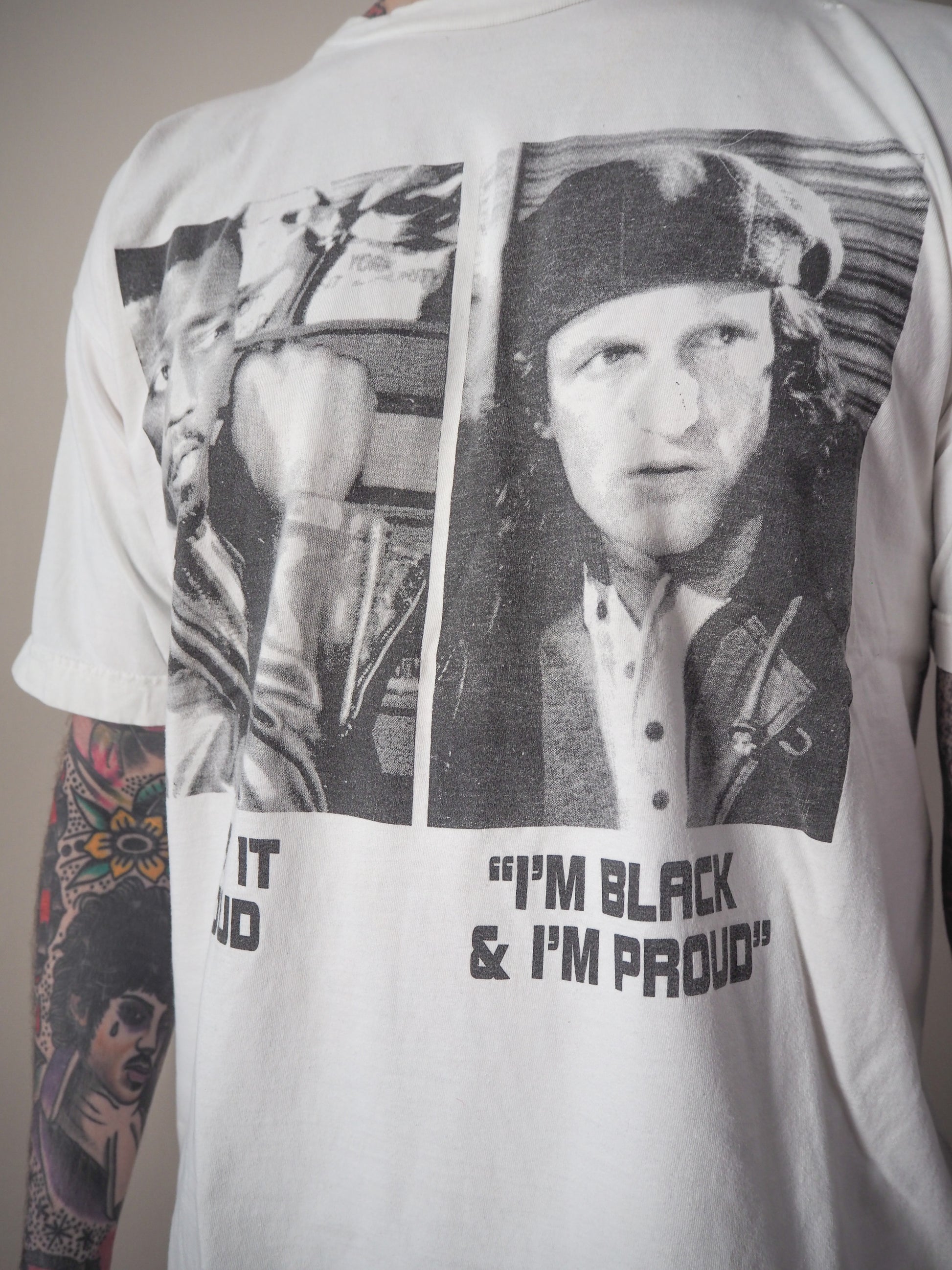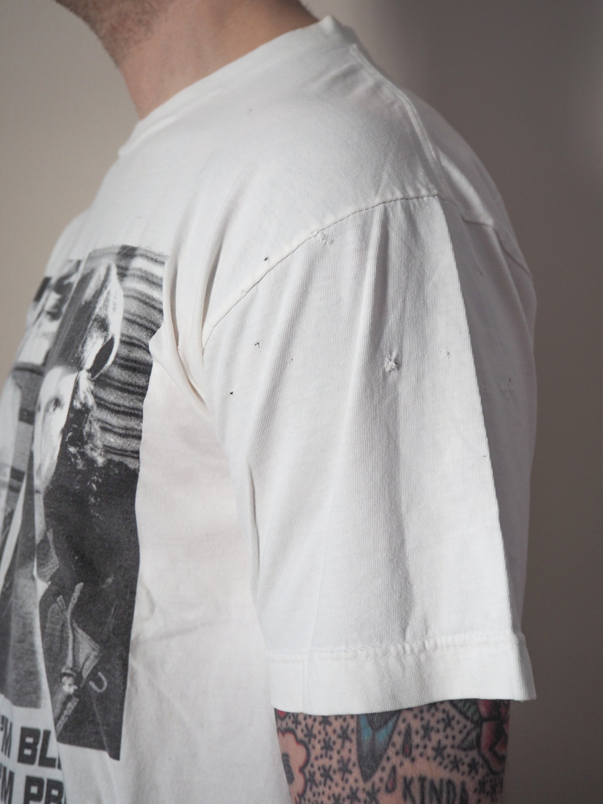 Printed on an Tour Champ tagged XL. Slight yellowing throughout shirt. Double stitched top and double stitched bottom.