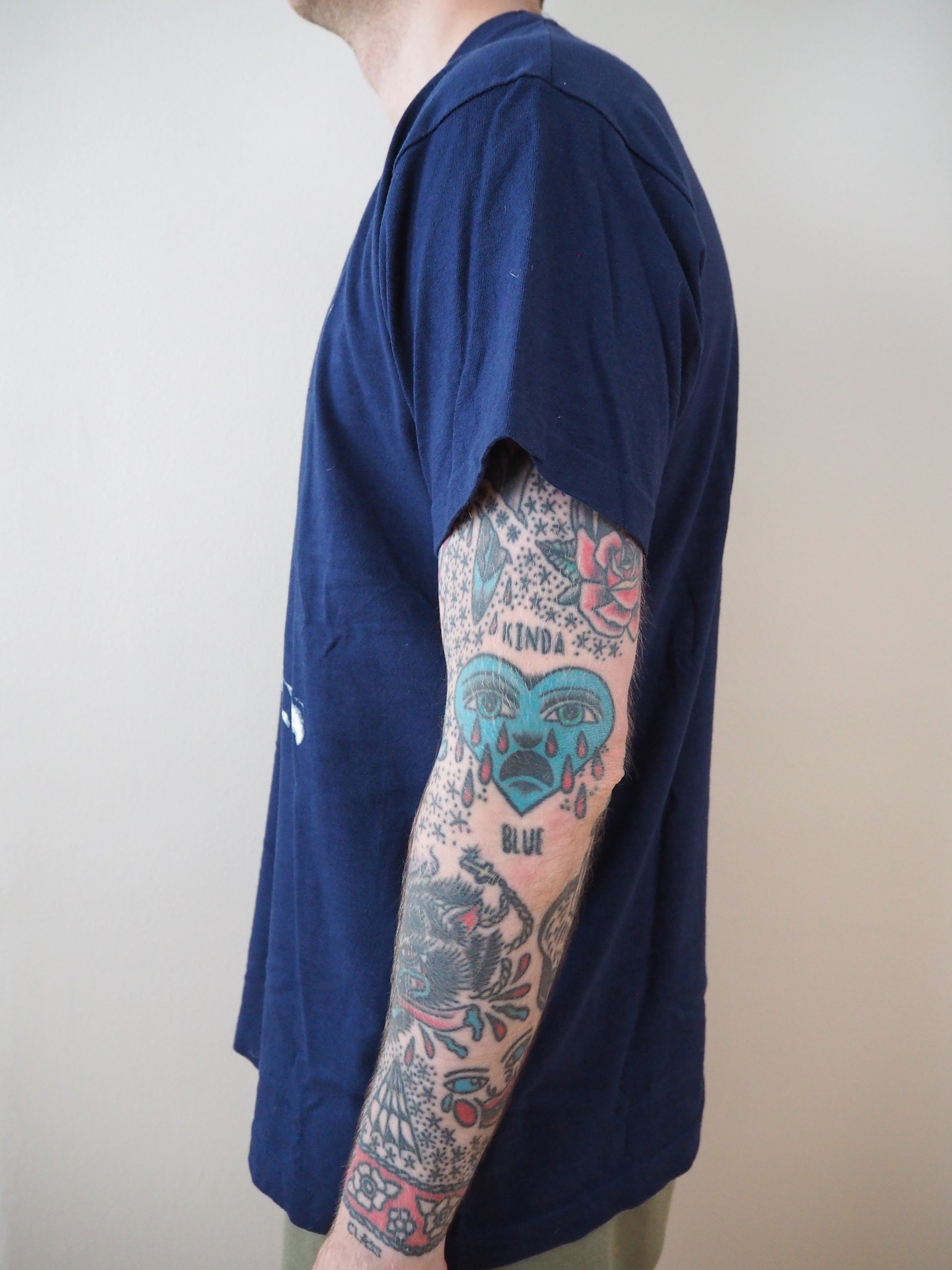 Printed on a Fruit of the Loom tagged XL. Great overall condition on shirt. Single stitched top and single stitched bottom.