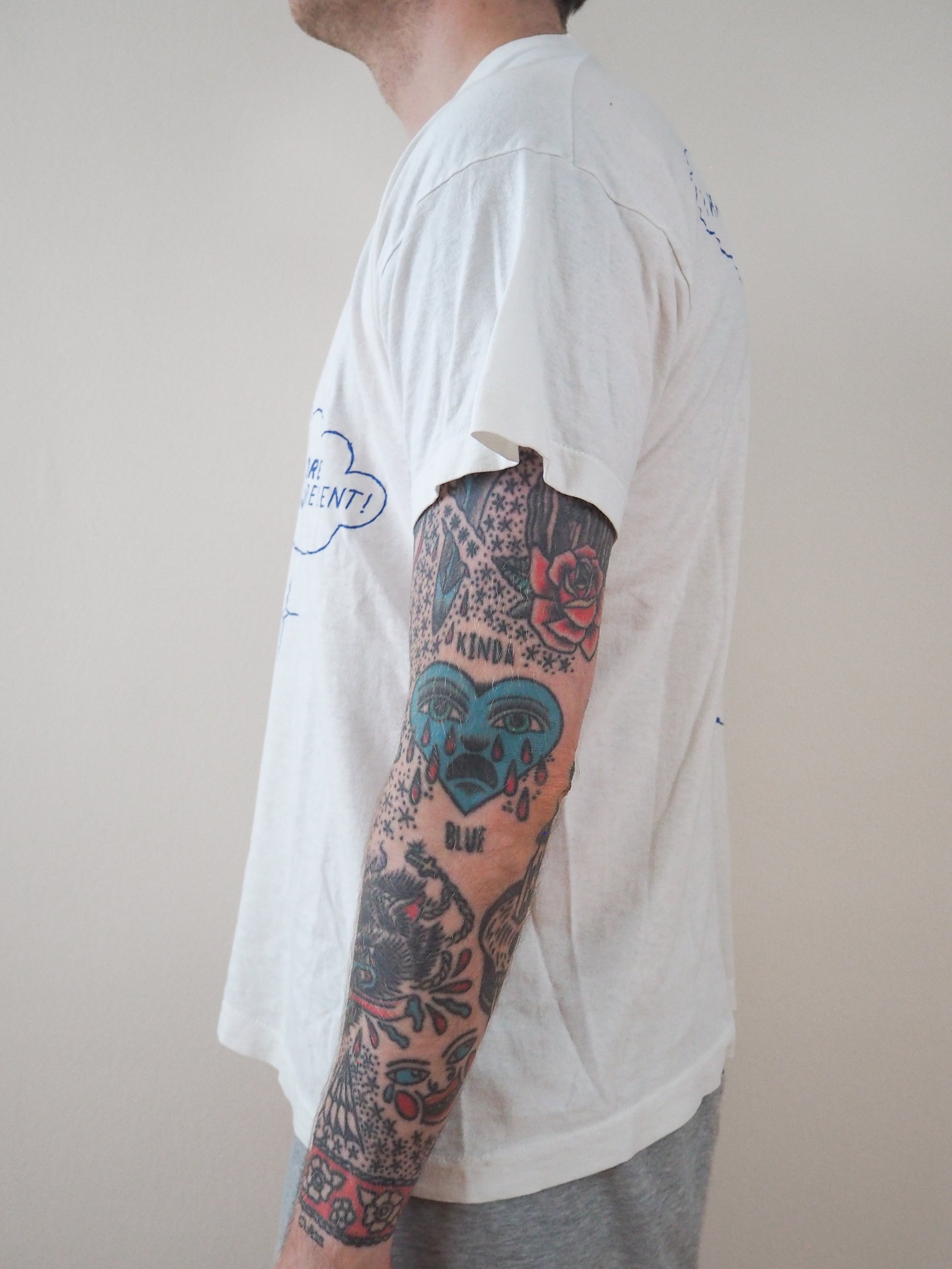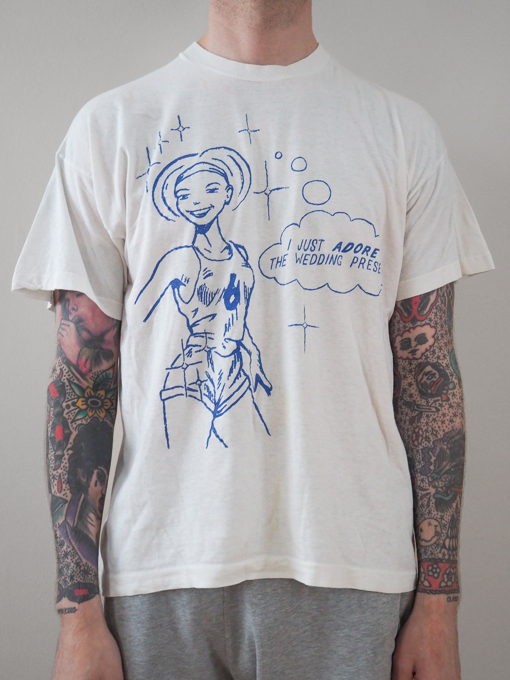 Printed on a faded out tag. slight staining on front of shirt. Single stitched top and single stitched bottom.