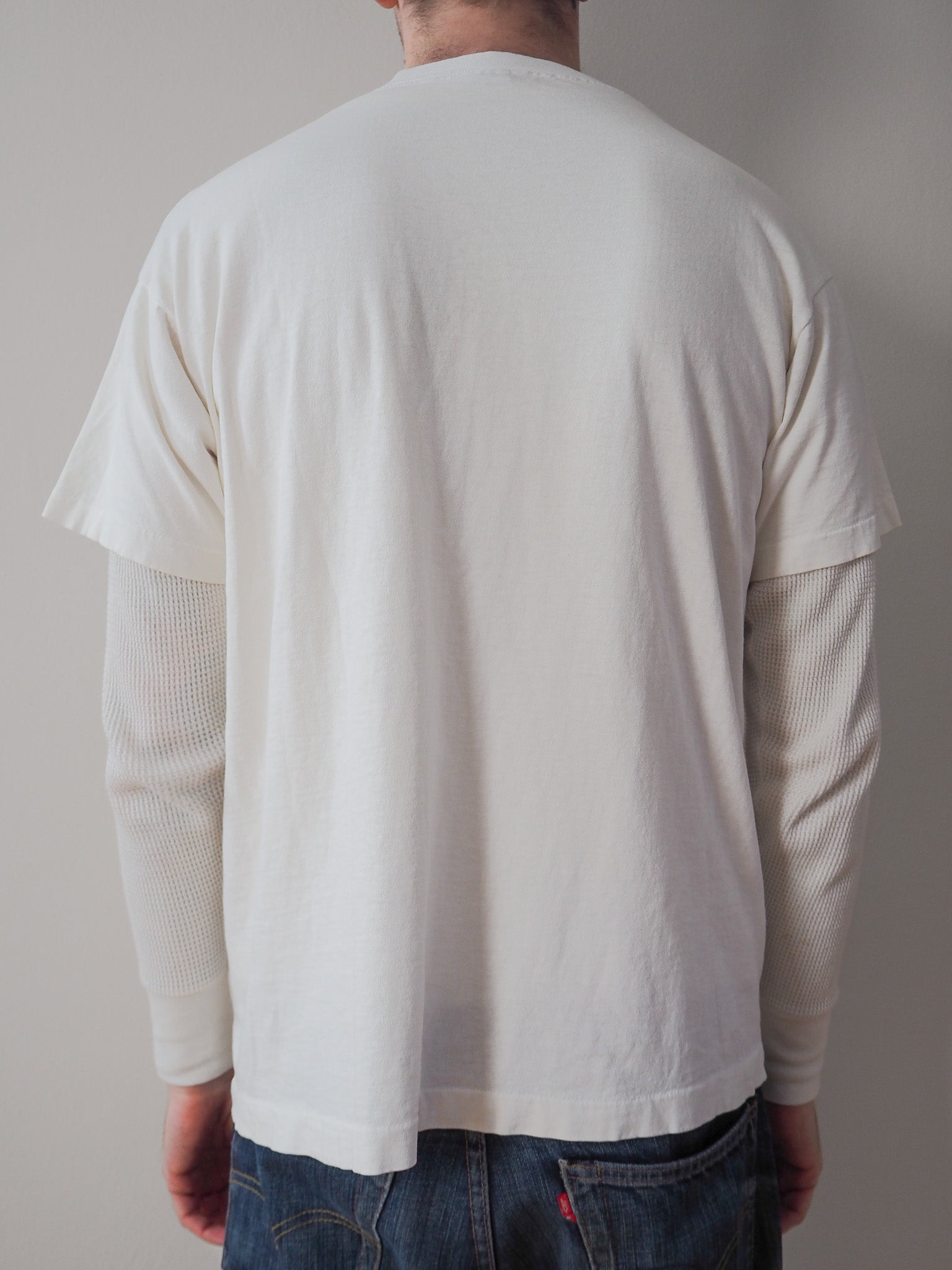 Printed on a Fruit of Loom tagged XL. Pinholes, light staining, and cracking in graphic.