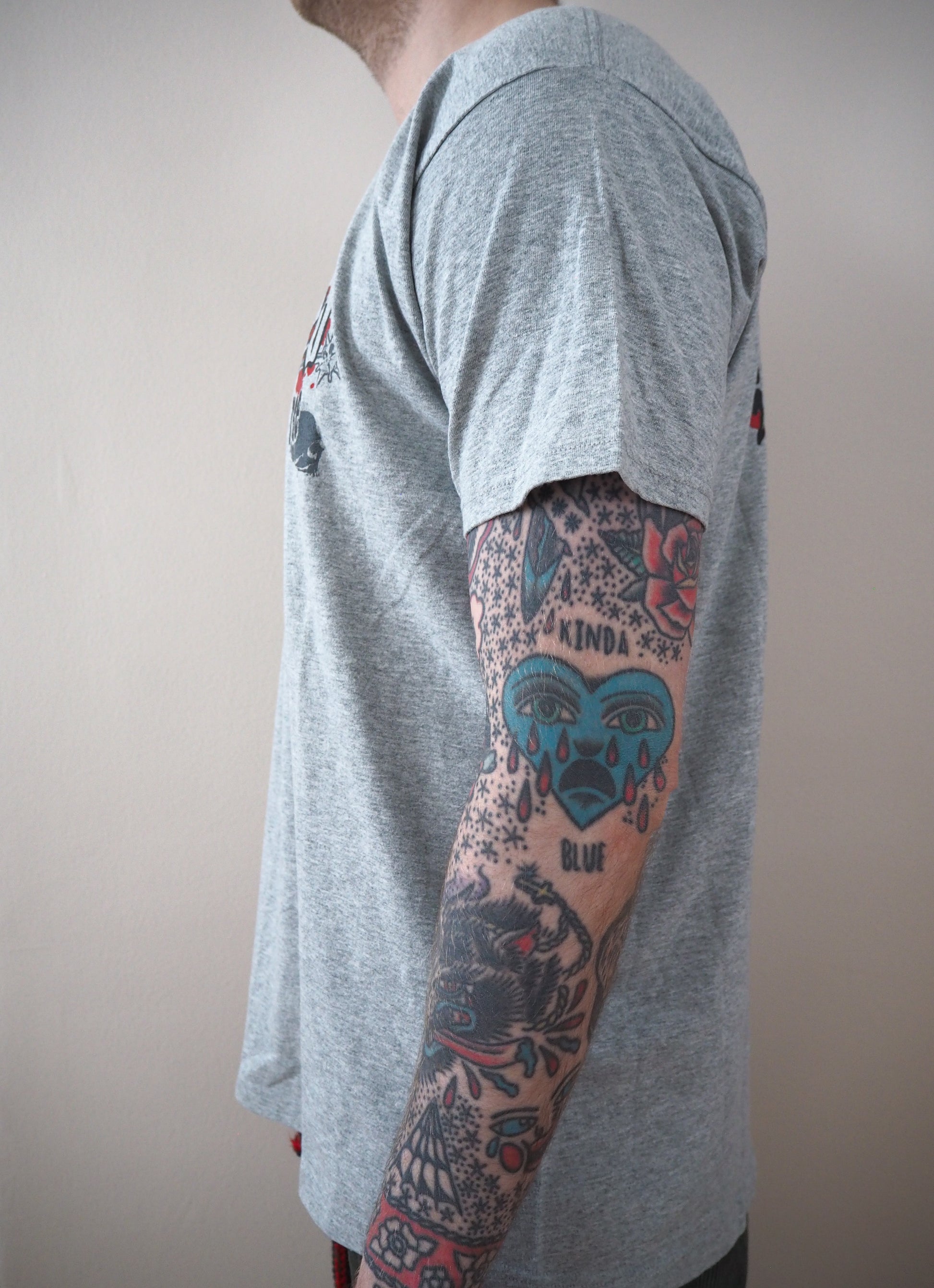 Printed Fruit of the Loom XL. Great overall condition. Double stitched top and double stitched bottom.